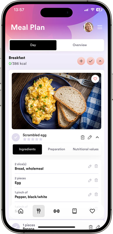 Screenshot der BenFit‑Software mit generiertem Wochenplan und Einkaufsliste